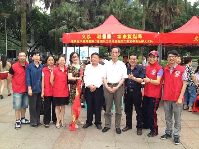 为迎接5月19日“世界助残日”,我院护理健康教育委员会读书俱乐部义工队张春梅、郑文娴、木冬妹、庄进飞、郑海松等于5月18日参加了市慈善总会在松台广场举行的“义工之光”大型露天广场文艺演出及义诊健康咨询活动。