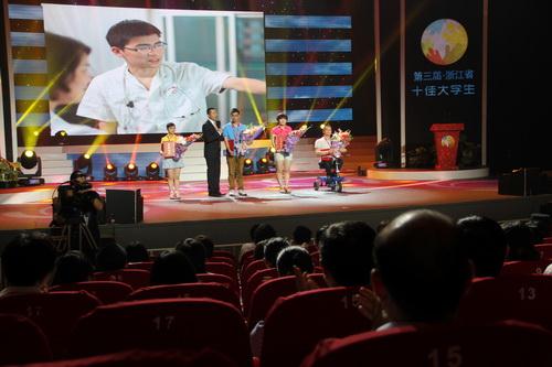 据悉,浙江省“十佳大学生”评选活动始于2008年,由省委宣传部、省委教育工委、团省委、省广电集团共同主办,旨在激励先进、树立典型,大力弘扬社会主义核心价值观,引导大学生立志成才。本届 “十佳大学生”评选于今年1月正式启动,并与浙江在线联合开展了“中国梦?我的青春宣言”微博互动活动,在广大师生中引起了强烈反响,共收到在校学生选票88000多张,网上投票参与人次达220万人次。