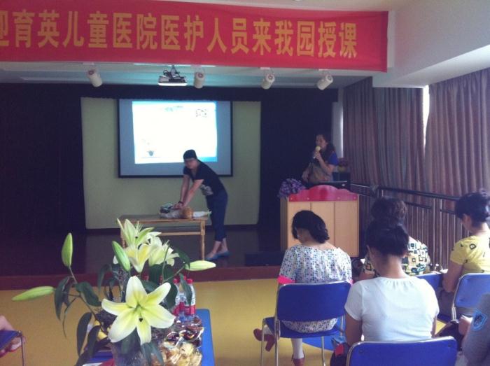 第二项内容是由张春霞护士长主讲《儿童意外伤害的救护》。趁着放学家长们来接孩子的时间,我们趁机将家长们及幼儿园的老师们聚集一起,向他们教授了一些生活中常见的意外伤害第一时间的救护知识,如溺水、骨折、动物咬伤、高热惊厥等等。我们还随身配带了模型。逼真的现场设计,让家长们能亲身参与,家长及老师们纷纷要求上台演练。