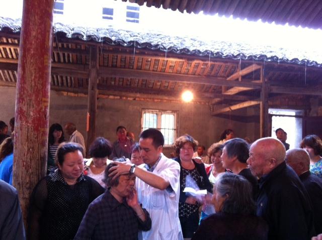 刚进入村庄就受到此起彼伏鞭炮声的热烈欢迎。村民们一早就等候在义诊地点——陈家庄村的祠堂里。到达目的地后,大家立即投入紧张的工作中,参加本次义诊的成员包括我院内科、外科、妇产科、儿科、骨科、眼科、麻醉疼痛科及超声科等多个学科的主任,吸引了众多该村及邻近村庄的民众前来咨询和求诊,将整个大厅围个水泄不同,形同赶集。专家们认真诊治,耐心解答问题,并提供健康指导、用药咨询等,现场免费提供的测血糖、超声检查及健康宣传知识手册也非常受欢迎。临近中午,雨越下越大,但村民们就诊的热情不减,午饭后大家继续工作至下午3点,整个义诊活动在村民们依依不舍的目光中结束。