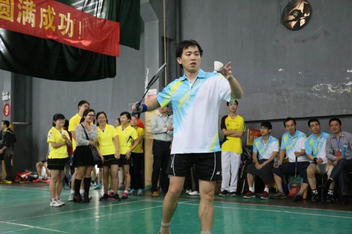 上午8:30,在郑君杰、陈荣等六位主任开球后,比赛正式开始。赛场上,羽球飞舞,对垒双方沉着应战,扣人心弦。每位选手利用敏捷的步伐和快速多变的突击,发挥个人优势进行进攻,打出了一个又一个高潮;双打赛尽显实力:完美的配合、威猛的扣杀、准确的判断、娴熟的技巧,无不展示出参赛选手的激情与活力。比赛双方你争我夺,你攻我防,步步为营,整个赛场气氛紧张而热烈。