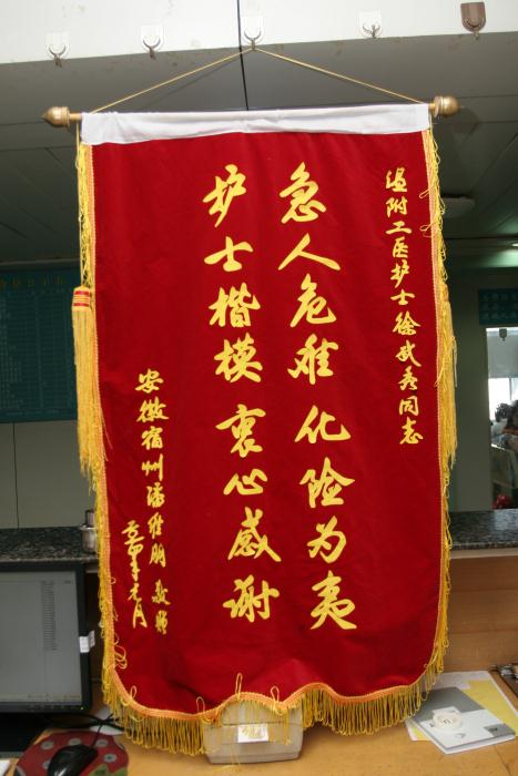 儿童感染科的徐武秀老师给人的第一印象是一位身材娇小的护士,或许身着便装,融入人海中并不起眼,但是眼前身着白衣的她却让人肃然起敬。1月27日,来自安徽宿州的新温州人潘维朋夫妇将一面锦旗和一封饱含感激之情的致谢信送到我院,感谢徐武秀护士对他们儿子的救命之恩。