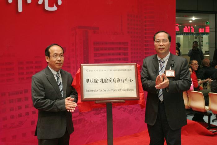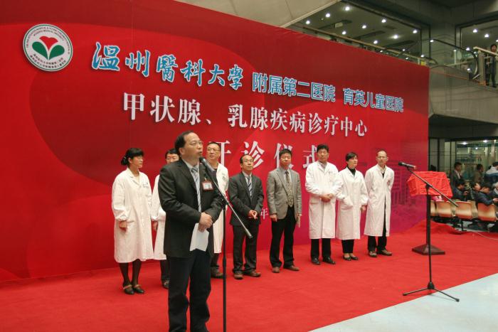 此次,甲状腺、乳腺诊疗中心由美国耶鲁大学医学院病理学系和我院相关科室联合创办而成,是浙南地区首家内、外、特检等多科室联合的专病诊疗中心。中心门诊诊治中心位于我院育英门诊综合楼2楼,涵盖了颈部外科、乳腺外科、内分泌科、超生影像科等科室,其宗旨是多学科协作,为甲状腺和乳腺病患者提供规范的一站式医疗服务。特别是遇有疑难病症,中心可安排多科室的医务人员联合会诊,极大地为病人提供了便利。