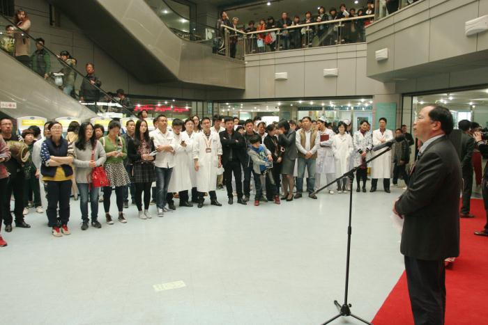 开诊仪式现场,我院连庆泉院长、林振浪副院长、美国耶鲁大学医学中心病理学系兼我院甲乳中心主任蔡国平教授、该中心相关科室负责人及部分医护人员出席,仪式由林振浪副院长主持。