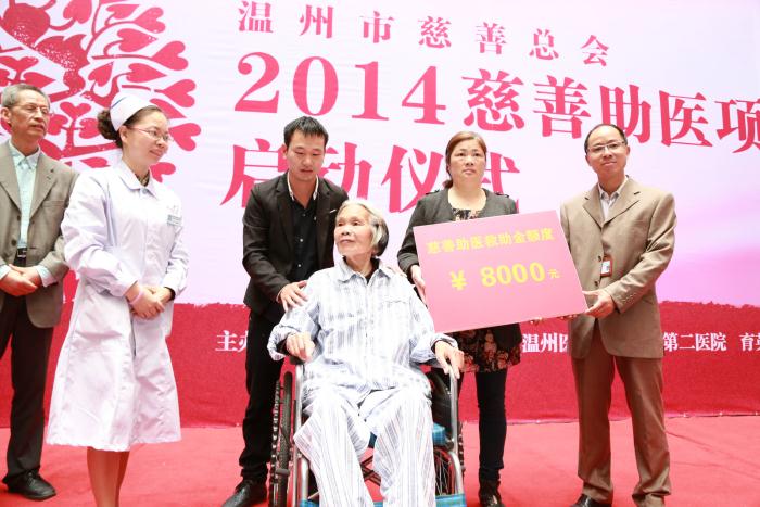 5月13日,在我院骨科住院的黄彩莲老人拿到了8000元慈善助医款,成为今年全市慈善助医新项目——骨关节人工置换手术的首位受益者。有了这笔爱心资助,黄彩莲老人有了重新站起来的希望。这一感人场景也宣告2014年慈善助医项目正式启动。昨天在我院育英门诊综合楼,市慈善总会与包括我院在内的13家医院现场签订“慈善助医”协议,计划投入839万元善款救助那些“因病致贫,因病返贫”的困难群体。