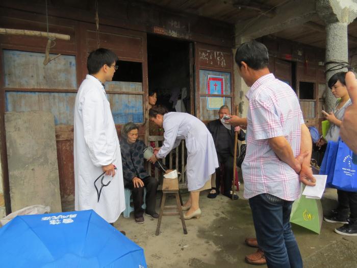 言章村位于泽雅山区,村中以留守老人为主,青壮年大都外出打工。村中许多老人有慢性疾病史,但是由于经济条件限制及交通不利,大都能忍则忍。知悉这一情况,我院急诊第一、二党支部决定开展本次义诊活动,在这次活动中,我们一行医护人员共为村里40余位留守老人提供免费诊疗及健康咨询并送出大量日常药品,对老人关心的常见病预防、慢性病自我控制均一一进行了耐心、详尽的解答和健康宣教。活动中听闻部分老人由于疾病原因行动不便,无法来到义诊现场,党支部成员在现场义诊活动结束后主动前往这些老人家中,探视老人病情,提供医疗帮助。
