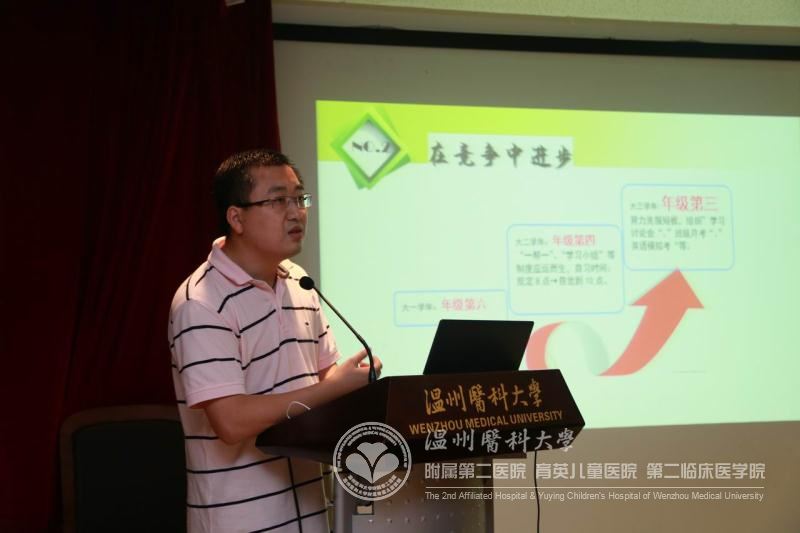 会上,各年级辅导员汇报了一年来年级及各班的学业情况、活动开展、荣誉收获、新学期计划等。通过班级期末成绩、四六级考试通过率、转专业学生情况、留级学生情况等四方面数据统计情况,与上一学年的数据进行对比,更加直观的看到各个班级的纵向发展和横向进步。2010年级同学们四年累计了数项国家级、省级、市级各类赛事荣誉,2人获得校2014年度“十佳大学生”,2个班级获得校2013年度“十佳标兵班级”称号,1人成为浙江省第194名、校第5名捐献造血干细胞志愿者。2011级活跃在学院各个社团协会,开展的活动既丰富又新颖,云集了杜白露、李萍、俞瑜、林彩秀等写作小能手们,新闻通讯硕果累累。2012的2名专职辅导员“双林合璧助成长”,15名专职医生担任导师“多方引导促成长”,15名优秀班助“亦师亦友伴成长”,小伙伴们以成熟之姿跨入了大三年级。2013年级的外国留学生们与大家友爱共处,成为学院一道独特的风景。