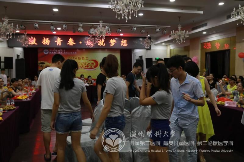 晚上六时许,在大家的期盼和掌声中,联欢会正式拉开序幕。首先由朱雪琼副院长代表医院领导致欢迎辞,并希望广大新员工牢记 “诚信、奉献、求精、创新”的院训,为医院的发展添砖加瓦。到场的新员工和领导们都在许愿卡上写下对医院衷心的祝福,郑重地放入许愿箱,放飞自己的美好心愿。新员工美少女们带来了开场舞蹈《小苹果》,劲爆的音乐和动感的舞步逐步点燃联欢会氛围。随后,来自急诊重症监护室的黄玉静帅哥和来自输血科的郑婷婷美女主持闪亮登场,将大家带入欢声笑语、High翻全场的游戏环节。“疯狂大搜集”、“抢凳子”,“海盗也疯狂”,“夹气球跑”等游戏,大家都踊跃参加,乐在其中,释放平时在工作生活中的压力。在游戏中,新员工们拉近了彼此的距离,从陌生到相识,感受到浓浓的大家庭的温情。在游戏中间环节,还穿插了新员工的才艺表演,如歌曲串烧、模特走秀、魔术表演等,节目精彩纷呈,突显了我院员工的多才多艺。