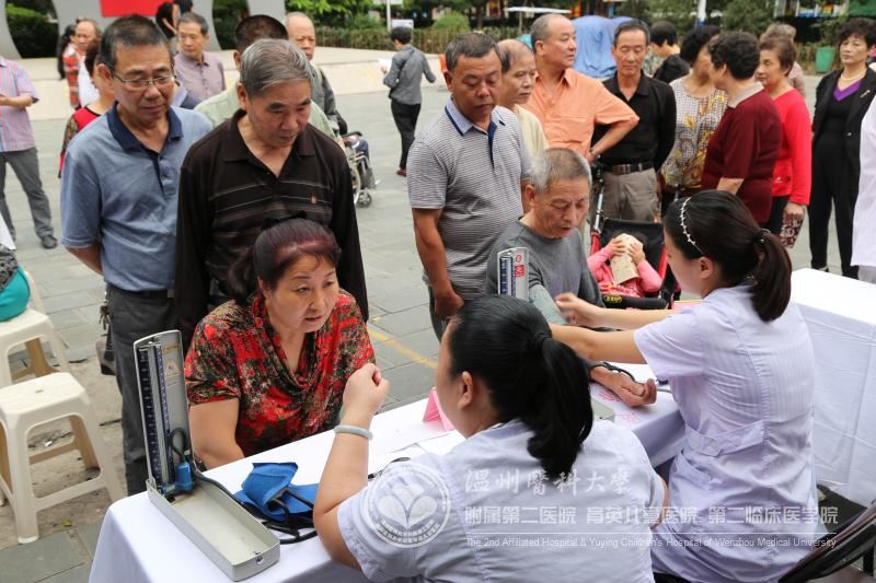 在启动仪式开始前,院办徐辉主任带领各科名医在社区楼下设立义诊台。义诊活动中到场就诊及咨询的群众均以中老年人为主,病种包含内、外、妇、儿科等常见疾病,多为老人病及慢性疾病,例如:高血压及其相关并发疾病、糖尿病、老慢支、冠心病、脑血管病变及各种疾病手术后康复等。根据老年人普遍存在血压偏高的现象,医院设有专人给到场咨询或就诊的群众免费测量血压,对测量结果进行记录并反馈到个人。对于血压偏高的群众,医生当场给予就诊、饮食建议并对其并发症进行相关的讲解,让群众了解高血压的危害及防治,提高群众对高血压病的认识。