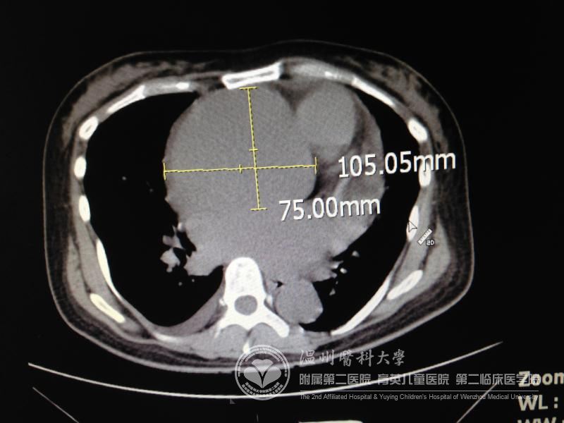 曲女士体内主动脉夹层已存在两年以上,因为经济原因,一直不能得到有效救治。病人入院时病情非常危重,胸部CT显示:升主动脉处形成一个直径达10cm的瘤体,累及主动脉弓,造成心脏严重扩大。患者极度痛苦,连睡觉都不能平卧。