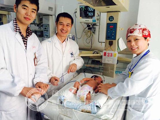 图为吴国伟副主任医师及新生儿科护士长照看患儿