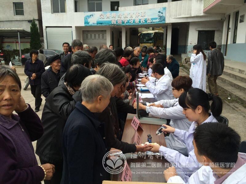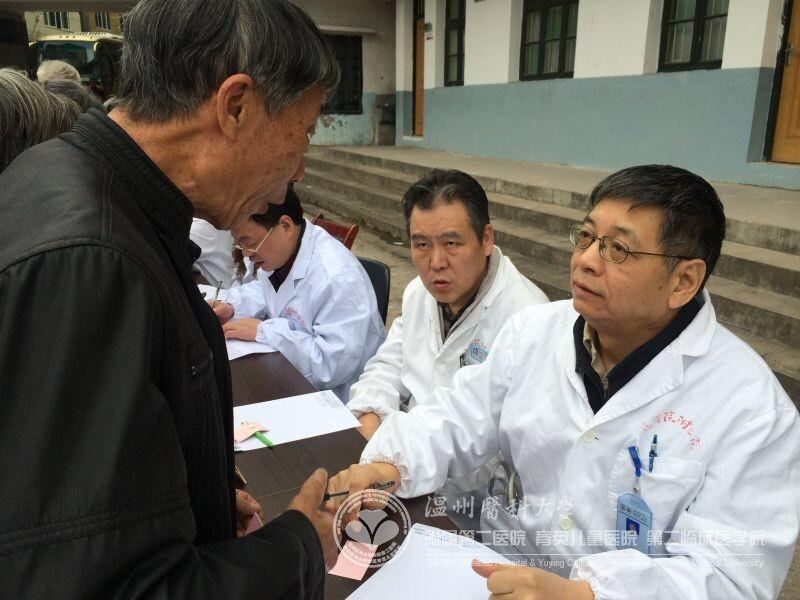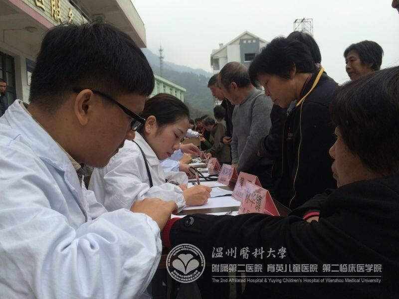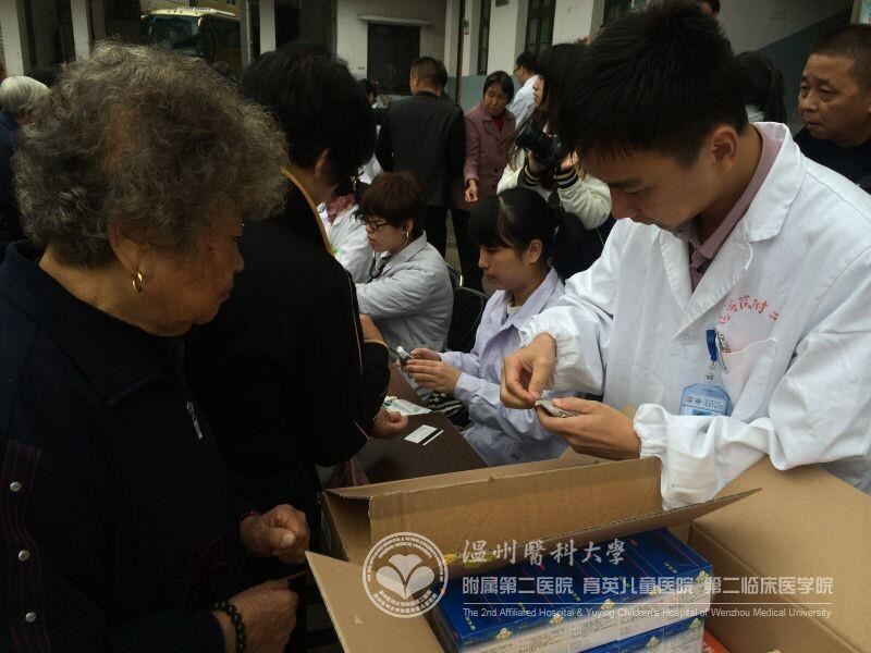11月16日上午,我院党委组织内科和儿科各党支部携手市珊溪水源保护管委员会办公室和温州网走进文成县大峃镇中樟社区,为当地社区的村民送医送药,献上自己的一片爱心。