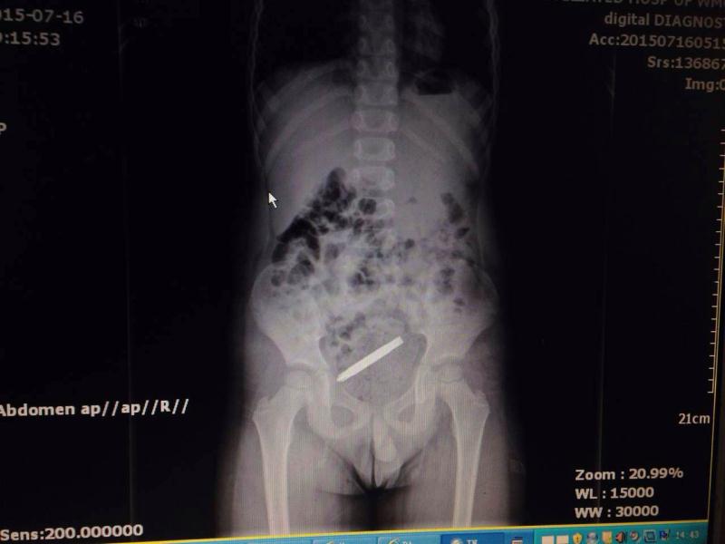 尖锐螺丝刀头下肚 随时可能肠穿孔