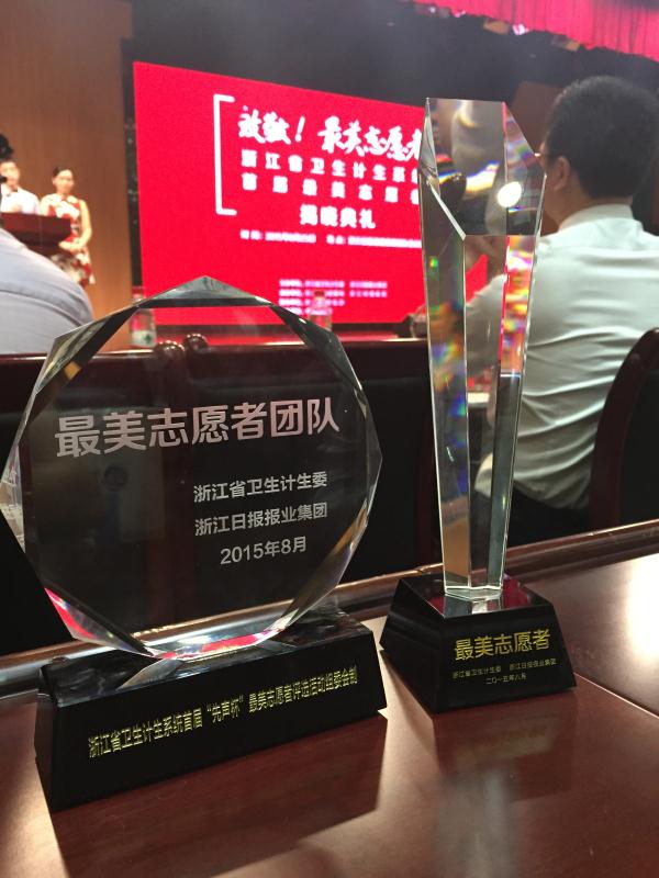 8月25日,在由浙江省卫生计生委和浙江日报报业集团主办的“2015浙江省卫生计生系统首届‘先声杯’最美志愿者”活动揭晓典礼上,我院“红十字应急救护志愿服务队”作为温州地区唯一荣获“最美志愿者团队”称号的单位,成为了聚光灯下的焦点。张若护士长手持烫金的“最美志愿者”荣誉证书,接受着众多闪光灯的致敬!