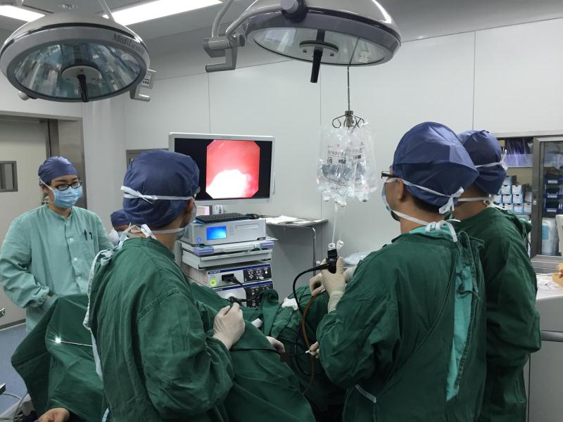 我院泌尿外科除常规开展体外冲击波碎石、输尿管硬镜钬激光碎石、经皮肾镜碎石清石等技术治疗肾、输尿管结石外,于2013年率先在温州地区引进组合式纤维输尿管软镜,开展输尿管软镜激光碎石技术治疗肾及输尿管上段结石,经患者尿道、输尿管进入肾内进行碎石,弥补了输尿管硬镜难以处理的肾及输尿管上段结石的局面,又避免了经皮肾镜碎石取石造成肾脏损伤出血等严重并发症,这种经自然腔道手术具有周转快、安全、几乎无创等优点,至今已成功开展130余例。