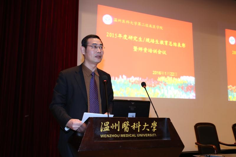 为进一步促进研究生教育/住院医师规范化培训的教学及管理水平提高,我院毕业后教育处/研究生处于1月22日在学院路校区学术报告厅召开了2015年度研究生/规培生教育总结表彰暨师资培训会议。会议由阮积晨副书记主持,褚茂平书记、李昌崇执行院长、继续教育学院周丽霞副院长、研究生院刘洁副院长、朱雪琼副院长、平阳分院胡型锑院长出席。我院研究生/规培省导师、多位学员代表参加了此次会议。
