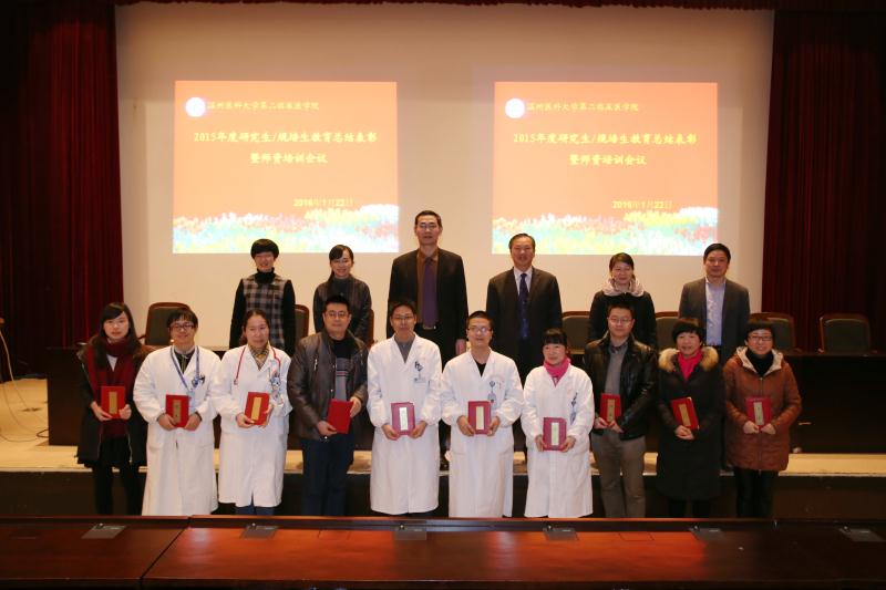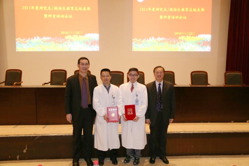 会议表彰了在师资培训工作中涌现出来的一批优秀组织单位和优秀个人。2015年7月,在国家卫计委指导下,中国医师协会联合《健康报》《医师报》,于在全国展开了“住院医师心中的好老师”推选和征文活动。我院蔡晓红教授从全国31个省(区、市)500多家住院医师规范化培训基地的带教师资中推选而出,并经过专家评定,成为全国共推选出百名优秀带教老师中的一员;同时我院儿内科医师林洪洲也在此征文比赛中斩获一等奖。