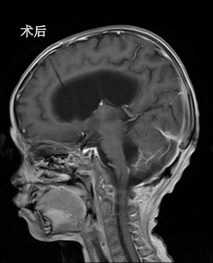 “图像报告显示这颗巨大的肿瘤紧紧包住了四分之三的脑干和好几条神经血管,手术风险极大。我们都知道脑干维持个体生命,包括心跳、呼吸、消化、体温、睡眠等重要生理功能,是人体的生命中枢,稍有不慎就可能造成无法挽回的损失。但这还不是当务之急,”林坚主任说,“迫在眉睫的是肿瘤堵塞了脑脊液的循环通路,造成了大量的脑积水,如不及时处置,不但肿瘤切除手术没法做,孩子随时都有呼吸骤停甚至死亡的可能,必须马上实施脑室外引流术。”