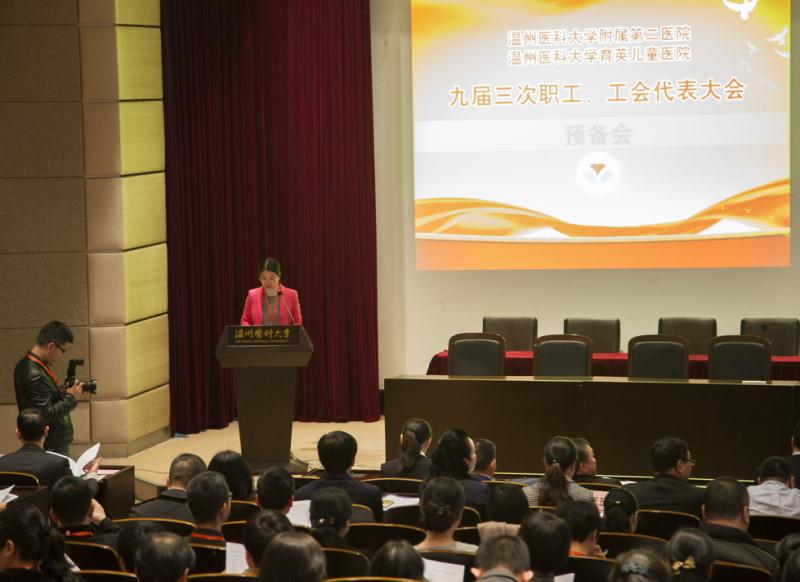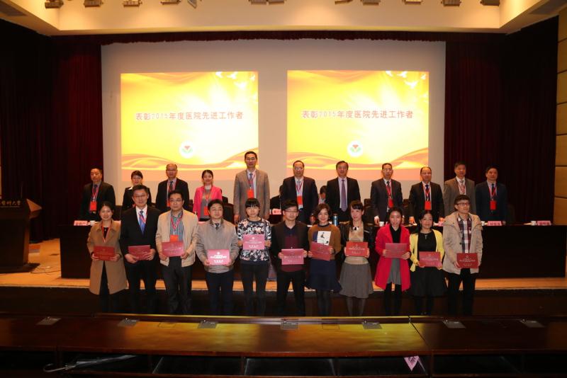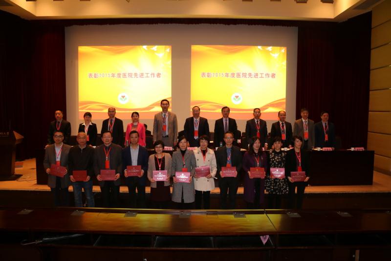 连庆泉院长在大会上作了医院工作报告。报告回顾了2015年我院在省卫计委和温州医科大学的领导和关怀下,在全院广大职工的齐心协力、共同努力下,以服务病人为中心,以品质管理为抓手,努力提升医疗质量品质、医疗服务品质、医院环境品质及学科建设和教育教学水平,在医院管理、医疗质量、诊疗安全、经济运营等方面取得了较好的成绩。报告从医疗、护理、教学、科研、行风建设、医院管理、行政后勤保障工作等方面,对医院2016年工作进行了部署,将2016年定为医院品质提升推进年,确定工作的总体目标:以十八届四中、五中全会精神为指导,以服务病人为中心,以新院建设为推力,以品质管理为抓手,努力实施改善医疗服务行动计划,以优良成绩通过省卫计委大型医院巡查,不断提升医院管理品质,树立医院品牌形象,努力朝将我院建设成为“医教研并重、特色鲜明、国内一流的研究型大学医院和国家级区域医疗中心”的目标奋进。