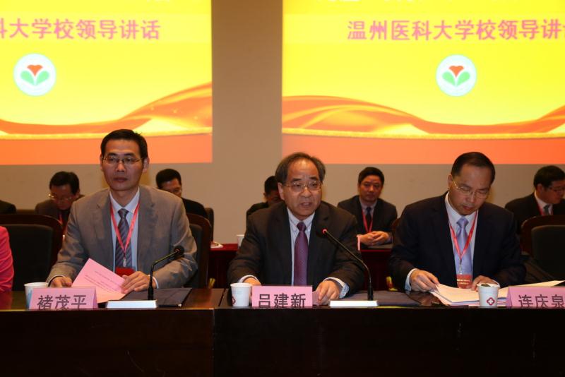 温州医科大学吕建新副书记应邀出席会议并讲话。他充分肯定了医院过去一年取得的显著成绩,就当前医疗卫生行业形势,为我院的发展提出了要求和希望,激励我院广大职工能再接再厉,在2016年再创佳绩。