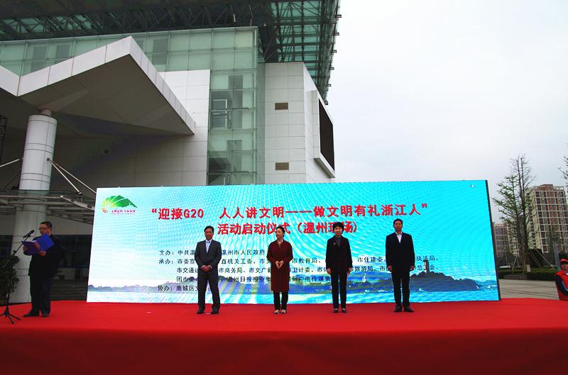3月21日下午,为贯彻落实省文明委进一步提高公民素质,巩固提升全国文明城市创建的成果,以良好的文明风尚共同迎接G20峰会,温州市“迎接G20人人讲文明——做文明有礼浙江人”活动启动仪式(温州现场)在世纪广场举行。我院卢朝升副院长作为文明单位方阵代表之一参加了启动仪式。
