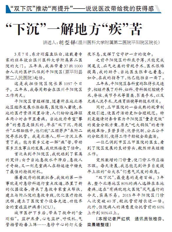 自述人:温州医科大学附属第二医院党委委员、心胸外科主任医师、平阳院区院长胡型锑