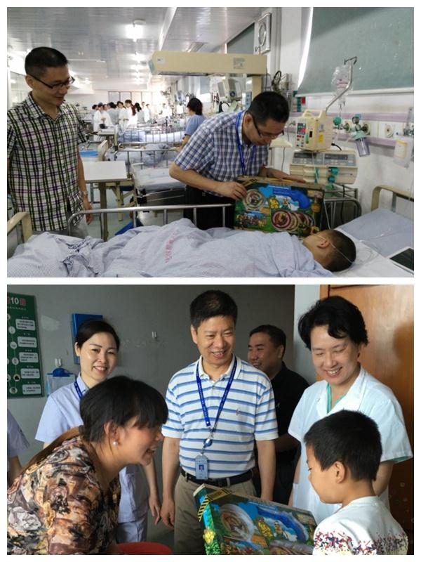 大清早,医院领导褚茂平书记、李昌崇执行院长、阮积晨副书记、林振浪副院长带着护理部、护理培训中心、党办、团委、医务处等职能科室负责人到儿科病房,为住院患儿送上小小的节日礼物和大大的节日祝福。