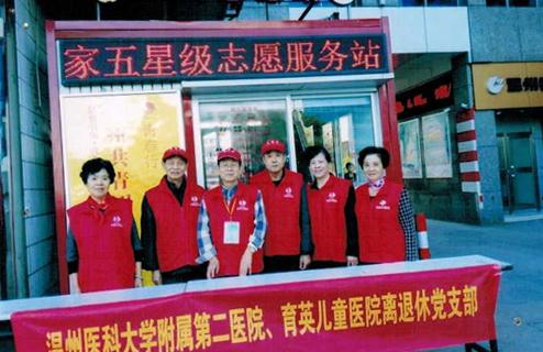 在我们医院的门诊楼和住院部之间,有个的幸福志愿站。这里您经常可以看到一位老人,带着慈祥的微笑,耐心地向前来咨询的病人解答所有的问题……他,就是我们医院有着81岁高龄的老党员——谢了武同志。