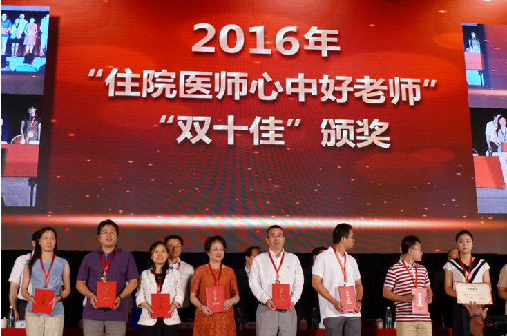 首先,开幕式上我院麻醉科胡明品接受“住院医师心中好老师”表彰。在国家卫生计生委科教司和国家中医药局人教司的指导下,中国医师协会组织国家级“住院医师心中好老师”征文及推选活动,旨在将各基地忠于本职、乐于奉献、甘当人梯,为我国住院医师规范化培训事业做出突出贡献的优秀带教老师推选出来,在全国进行宣传推广,以进一步激发带教老师的责任感与荣誉感,以期促进住培带教质量与基地建设水平的全面提升。这项活动,始于去年,每次最终人选不超过一百名,我院蔡晓红教师获得2015年该项荣誉称号。我院麻醉科关注住培,较早就进行了探索,例如,2011年温医大二院麻醉学科在浙江省率先进行尝试“住院医师规范化培训与专业学位研究生教育衔接”,走在全省的前列。麻醉学科住培工作规范、落实彻底,受到赞许,2015年被温州医科大学评为“住院医师规范化培训示范专业基地”。此次胡明品主任又获此项殊荣,是对我院住培工作的再次肯定!