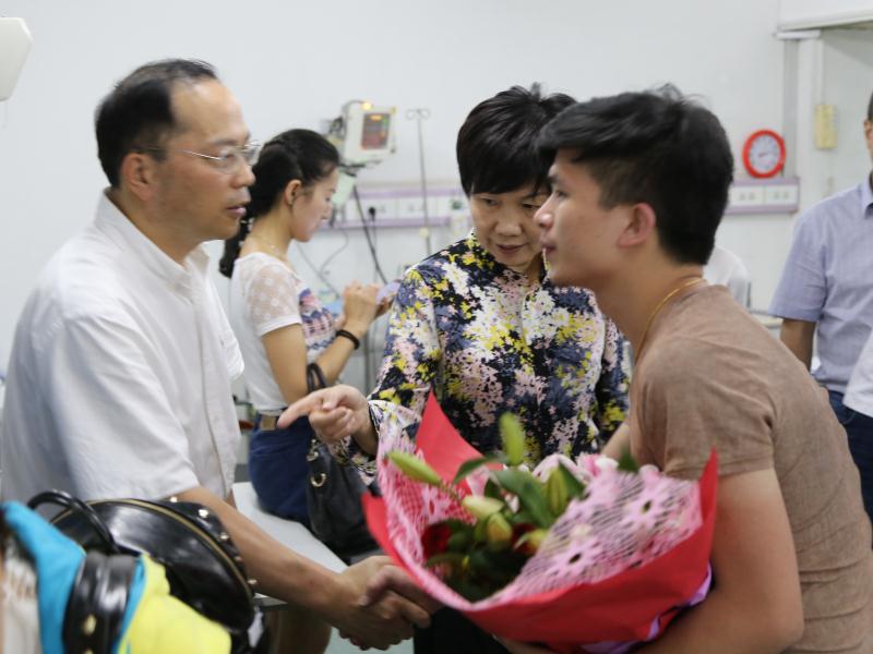 18日下午4时许,副市长郑朝阳一行在我院连庆泉院长、林振浪副院长的陪同下,前往病房探望郑小小。郑阿姨亲切地安慰道:“孩子,这里有很多叔叔阿姨保护你,一切都会好起来的!”连庆泉院长表态:“医院将尽全力救护,请市委市政府和全市人民放心。”