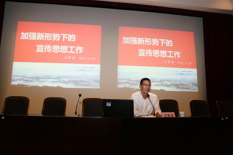 报告会上,汪军洪结合自身丰富的宣传工作经验,围绕当前意识形态领域的复杂形式下宣传思想工作面临的任务,介绍了切实加强政治理论学习、做好新媒体时代的宣传报道工作、筑牢校园意识形态安全防线等三方面内容,并对党的宗教工作基本方针和当前全国、全省的宗教形式进行了系统全面的阐释和深入细致的解读。