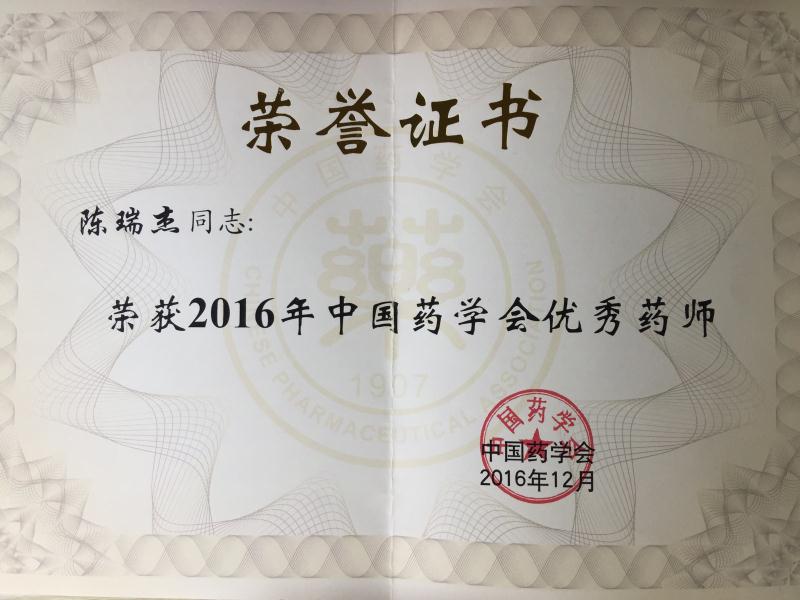 据悉,此次大会旨在着力培养药学科技人才,全面搭建广大医药卫生工作者广泛交流、共同发展、创新奋进、成果共享的学术交流平台。“2016年中国药学会优秀药师”由各省、自治区、直辖市、各计划单列市、新疆生产建设兵团药学会、中国药学会医院药学专业委员会、军事药学专业委员会推荐,经优秀药师评审委员会审议,实行差额评选产生,最终全国73名药师获此殊荣。陈瑞杰药师在医院药学工作中,坚持“立足本职,做好服务”的原则,始终贯彻“以质量为核心,以病人为中心”和“药学服务于临床”的工作宗旨,在积极发挥员工积极性,完善工作流程,加强管理力度,提高工作质量,降低工作差错,确保患者用药安全等方面作出了重要的贡献。