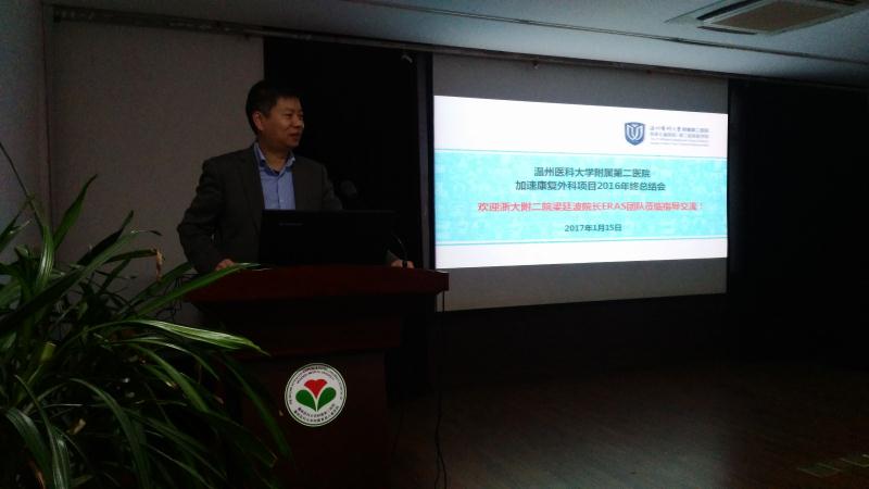 为了2017年能够更好的推进该项工作,ERAS实施小组于1月15日上午在儿童医院三楼会议室召开了加速康复外科项目2016年工作总结会,试点科室成员共同总结经验与不足。总结会邀请了浙江大学附属第二医院梁廷波院长肝胆胰外科ERAS团队三位专家前来分享经验。营养科、康复科、药学部、护理部、手术室、医务处代表出席了本次会议。