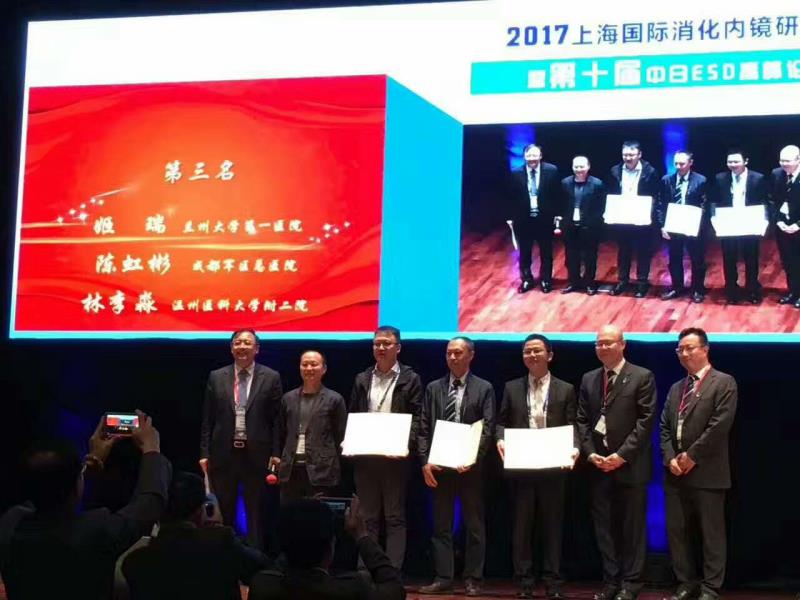 4月7日至9日,第二届全国海博刀ESD手术视频大赛在上海复旦大学附属中山医院举行,此次比赛吸引了国内众多消化内镜ESD高手参加,我院消化内科林李淼副主任医师在众多参赛高手中脱颖而出,取得了第三名的好成绩。这标志我院消化内镜ESD治疗水平得到了全国顶级消化内镜专家学者的认可。这几年我院消化内科消化内镜发展迅速,在薛战雄主任团队的带领下,目前我院消化内镜诊疗水平已全面处于浙南领先水平。