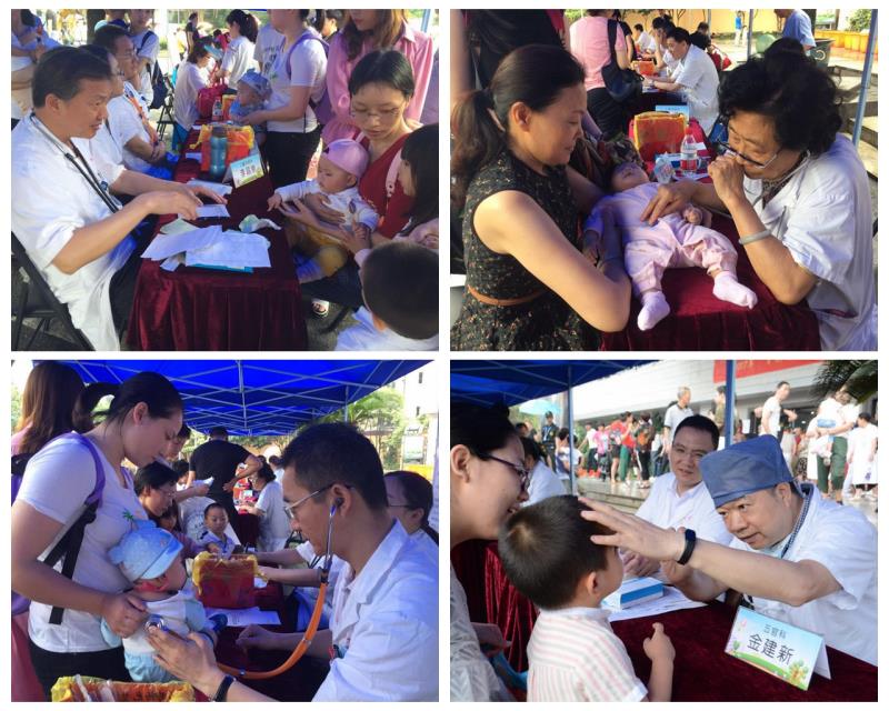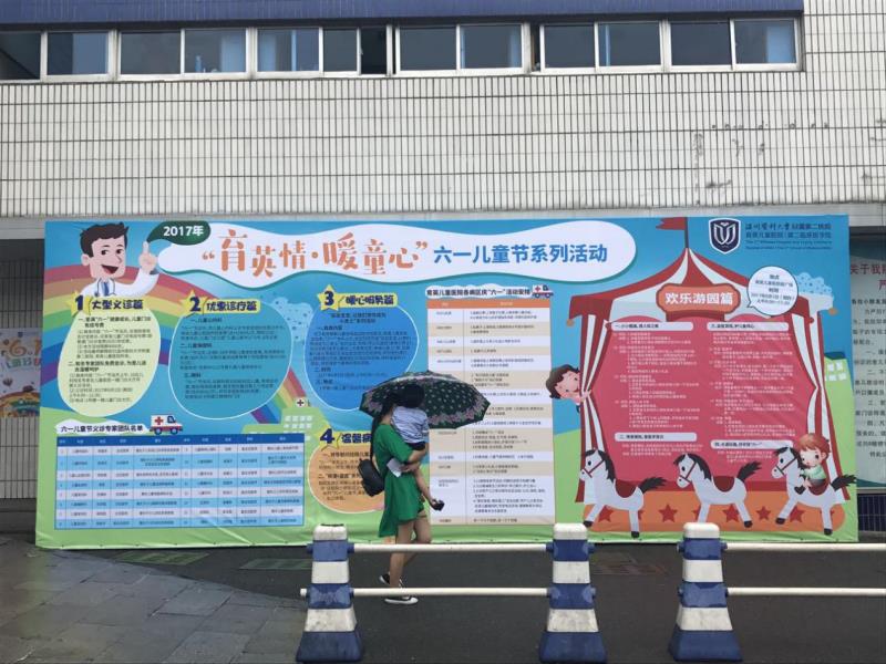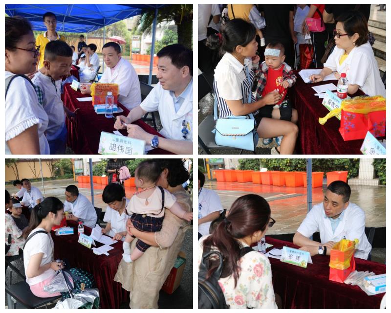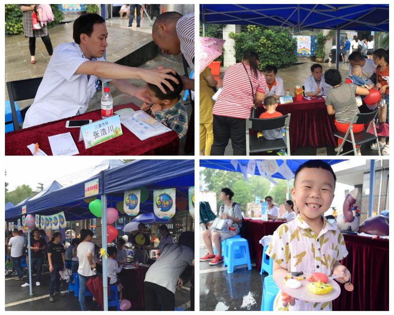 虽然天空下着蒙蒙细雨,却挡不住我们为患儿送上健康、送上祝福的热情。一大早,在儿童医院广场上,主任医师们、学生志愿者们,早已摆开阵势、准备就绪。儿童呼吸科、儿童心血管内科、儿童血液科、儿童肾内科、儿童消化科、儿童麻醉科、儿童精神心理科、儿童保健科、儿童内分泌、儿童胸外科、儿童外科、五官科、皮肤科、眼科等各大科室的主任,齐齐上阵,平常一号难求的专家,今天组成重量级的义诊专家团为患儿们送去免费、贴心的诊疗。前来问诊的患儿及家属络绎不绝,专家们热心细致地为患儿进行疾病诊断、就医用药指导,为家长答疑解惑。为有效缓解儿童在采血过程中的紧张、提高儿童采血成功率,检验科还开展了“采血宝宝,让我们带你成为小勇士”系列活动,为孩子们送上了暖心服务。
