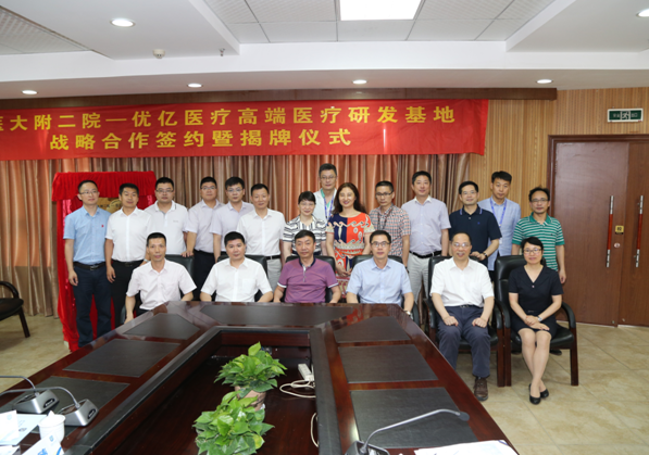 最后,连庆泉院长与王卫东董事长代表合作的双方签署协议,并与金胜威副校长、卢智远副局长、王卫东董事长等一同为研发基地揭牌,标志着温医大附二院---优亿医疗高端医疗研发基地正式成立。温医大附二院—优亿医疗高端医疗研发基地的成立预示我院将与浙江优亿医疗器械有限公司开启专利转化的快车道,共同推动科技创新成果转化,为我院科技发展提供了良好的转化平台。