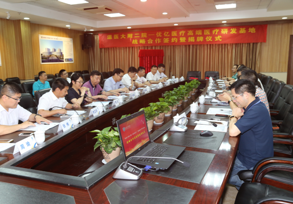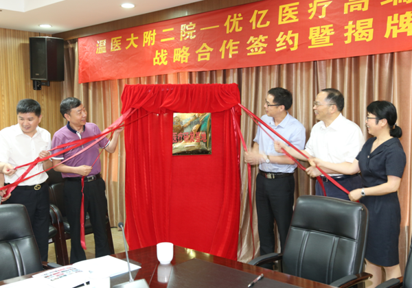 6月1日上午,温医大附二院与浙江优亿医疗器械有限公司战略合作签约暨揭牌仪式在我院隆重举行。出席嘉宾有温州医科大学副校长金胜威、温州市科技局副局长卢智远、农村与社会发展科技处处长刘广臻、温州医科大学科技处处长曹红、浙江优亿医疗器械有限公司董事长王卫东等10余人。我院连庆泉院长、朱雪琼副院长、赵亚新处长及李军主任、戴元荣主任、胡越主任、薛战雄主任、王向阳主任、林函主任等相关科室10多人出席此次签约揭牌仪式。副院长朱雪琼主持仪式。