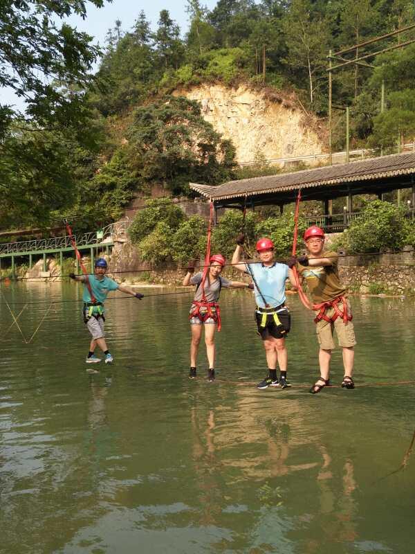 交流会结束后,博士团队来到了瑞安巾仙溪,展开了为期半天的野外拓展训练。通过完成一项项极限挑战,博士团队队员们跨越心理障碍、突破心理极限,在拓展项目中寻找合作的黄金点,不断形成默契,最后磨合成为一个能够冲破任何防线的组合体,团队的每个成员在项目进展中增强了克服困难的信心和勇气,提高了面对困难却能坚忍不拔进行到底的精神。