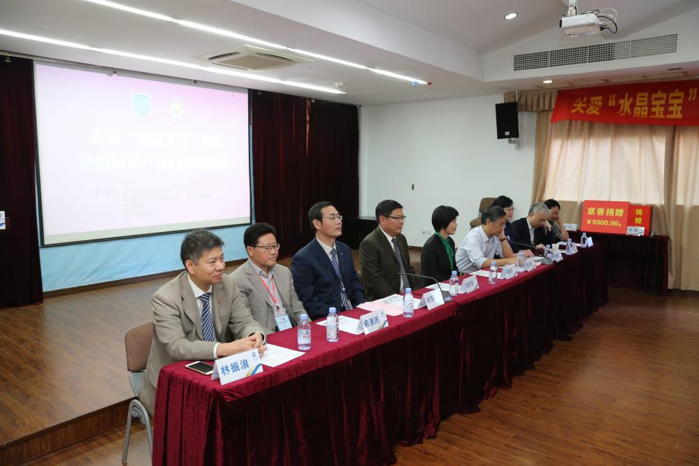 我院党委书记褚茂平发表了致辞并对现场嘉宾的到来表示热烈的欢迎。温州市九三学社作为“水晶宝宝公益救助行动”主要发起单位,黄少铭主委也做了重要讲话。