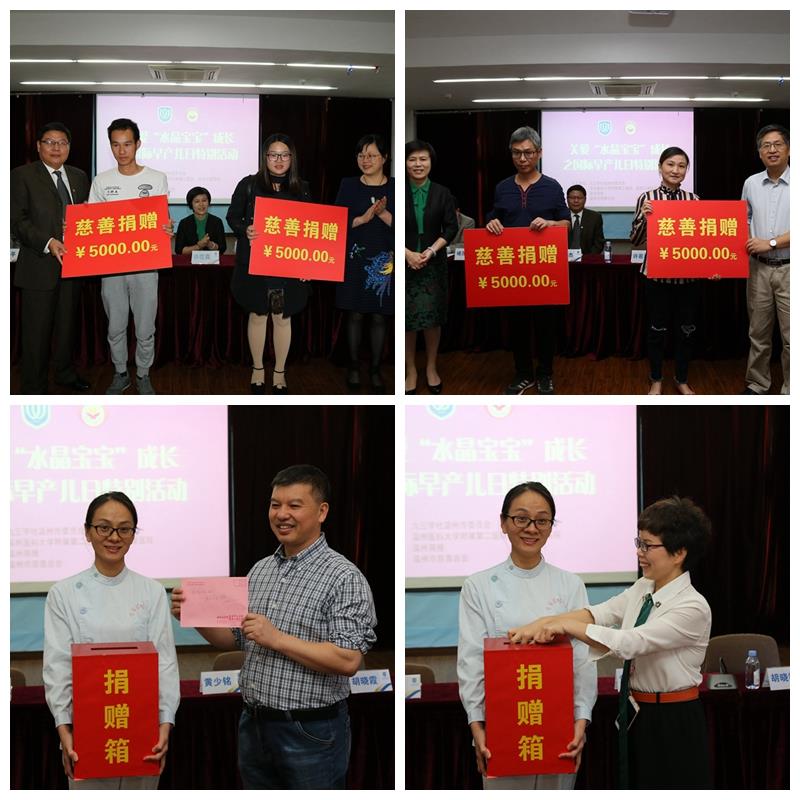 出席嘉宾有温州市委统战部常务副部长许若真、温州市政协副主席、九三学社温州市委会主委黄少铭、温州医科大学统战部部长张华杰、九三学社市委会专职副主委胡晓霞、我院党委书记褚茂平、副院长林振浪,以及4位远道而来的新生儿科领域的著名专家:美国纽约西奈山医疗中心林锦教授、上海复旦大学附属儿科医院陈超教授、北京大学第一医院妇产儿童医院冯琪教授、浙江大学附属儿童医院俞惠民教授,还有医院各相关处长和主任、新生儿科的医护人员以及50对水晶宝宝家庭。新生儿科主任陈尚勤主持了活动。