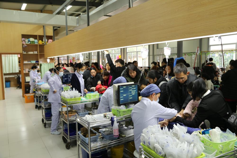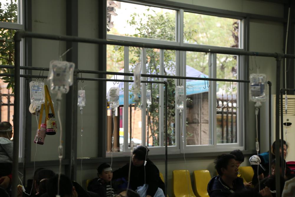 最近,我院儿童输液室又重现了许久未见的“春运场面”:一个个脸色蜡黄的孩子耷拉着脑袋,各式的输液袋形成了一片蔚为壮观的“森林”。护士们紧密衔接,全力为患儿提供输液服务。