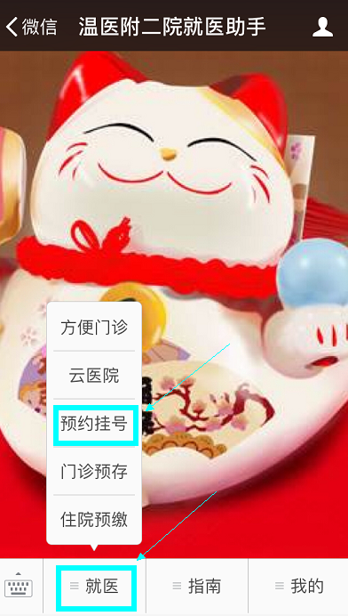 步骤一:微信搜索“温医附二院就医助手”或者“wyfeyjyzs”