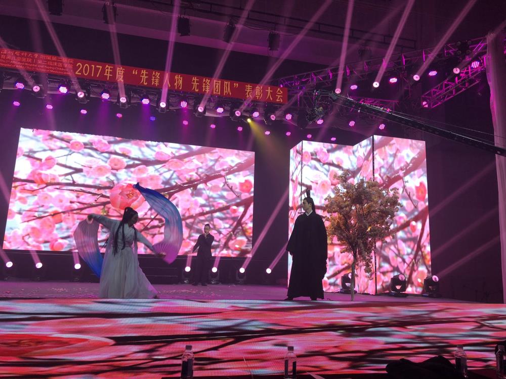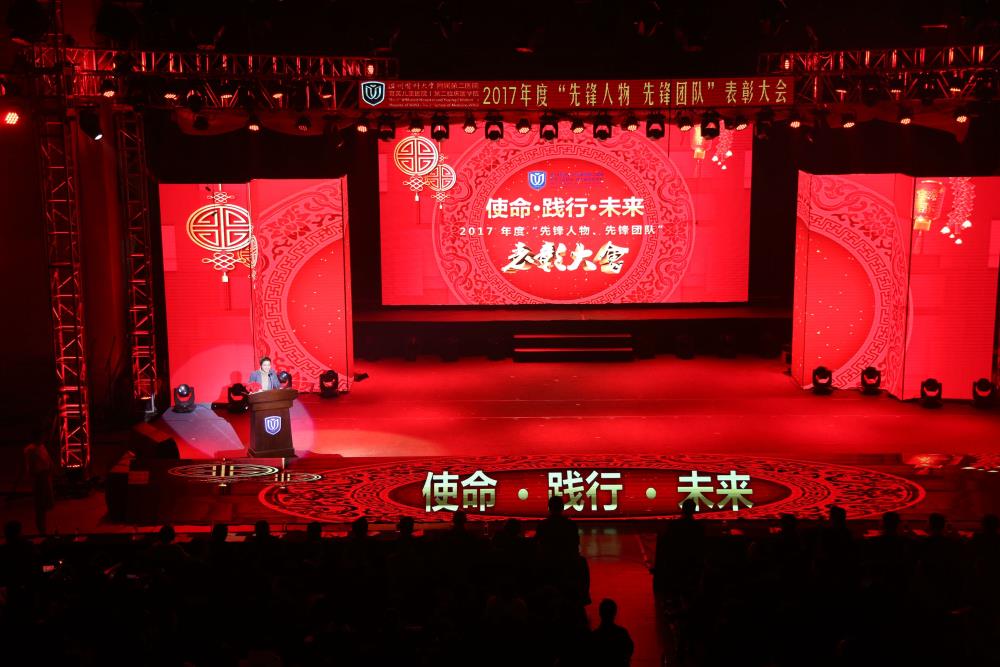2月2日晚,我院在温州医科大学学生活动中心隆重举行了“使命·践行·未来”——2017年度“先锋人物、先锋团队”表彰大会和联欢晚会,为全院职工带来了一场全新的视听盛宴。偌大的盛会现场,舞台布置炫彩夺目,声光电一应俱全,邀请全场观众尽享颁奖盛典的激情、荣耀之旅。今年更是创新采用了现场直播的形式,最高共有2万余人同时在线收看。