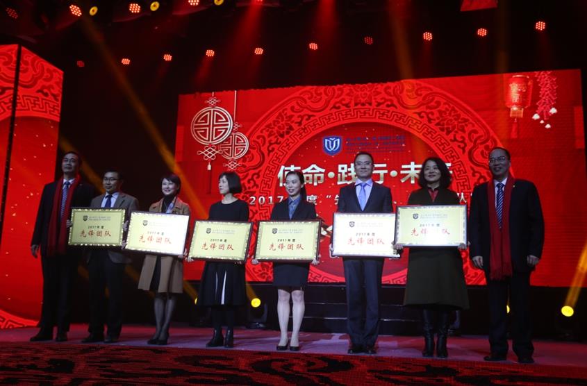 晚会首先举行的是2017年度“先锋人物、先锋团队”表彰大会。灯光隐去,“先锋”亮起。党委副书记许慧清作为表彰大会主持人,介绍了先锋人物及先锋团队产生的过程。同时,现场播放了由20位先锋候选人参演的我院自行编导的主题微电影《我们不一样》和由12支先锋候选团队共同拍摄的《人民的名义》同名主题曲MV,掀起了晚会的一个小高潮,引发了全场共鸣。这次崭新的先锋亮相方式,从不一样的角度展现了先锋人物和先锋团队的闪光点和魅力。