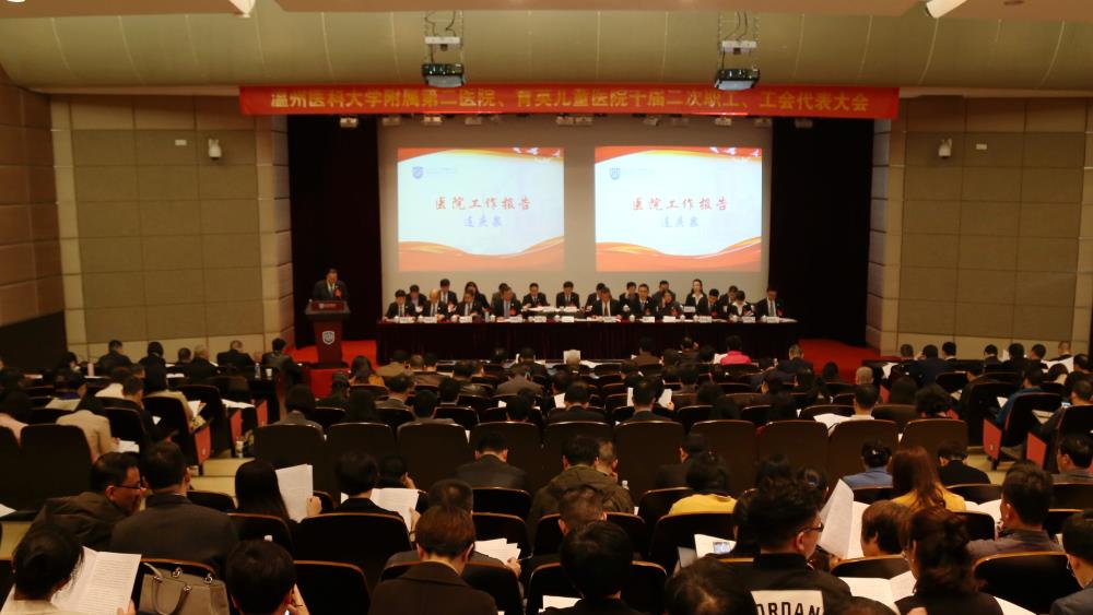 温医大副校长陈培根、工会常务副主席赵建中应邀出席会议。陈培根副校长作了重要讲话。他充分肯定了医院过去一年取得的显著成绩,结合当前医疗卫生行业形势,对我院的发展提出了要求和希望,激励我院广大职工以改革创新为动力,以强化特色为核心,以提升内涵为目标,进一步统一思想、坚定信心、抢抓机遇、锐意进取,争取2018年再创佳绩。