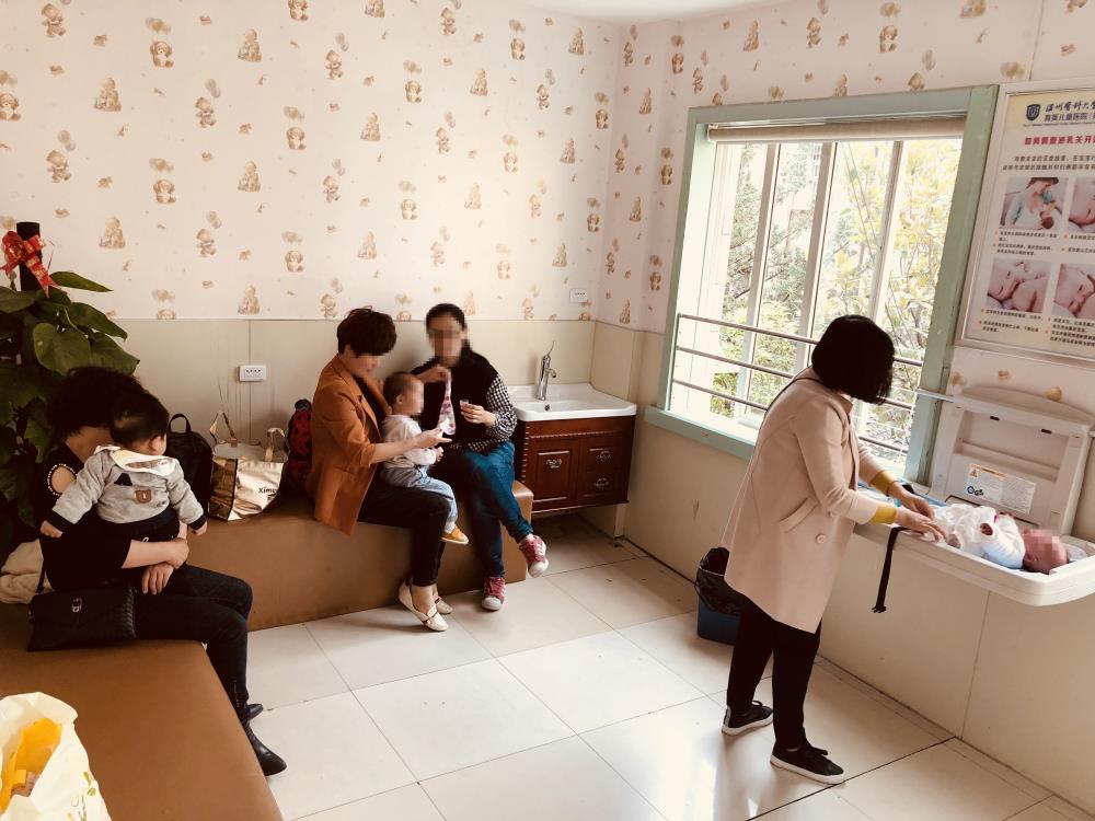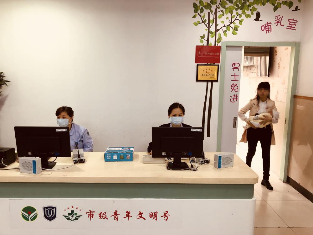 沿着儿童医院门诊大厅里的楼梯走到二楼,就能看见一个醒目的分诊台。和医院其他的分诊台一样,这里同样聚集着不少的患者家属向护士咨询各式各样的问题。分诊台的后方是一间哺乳室。