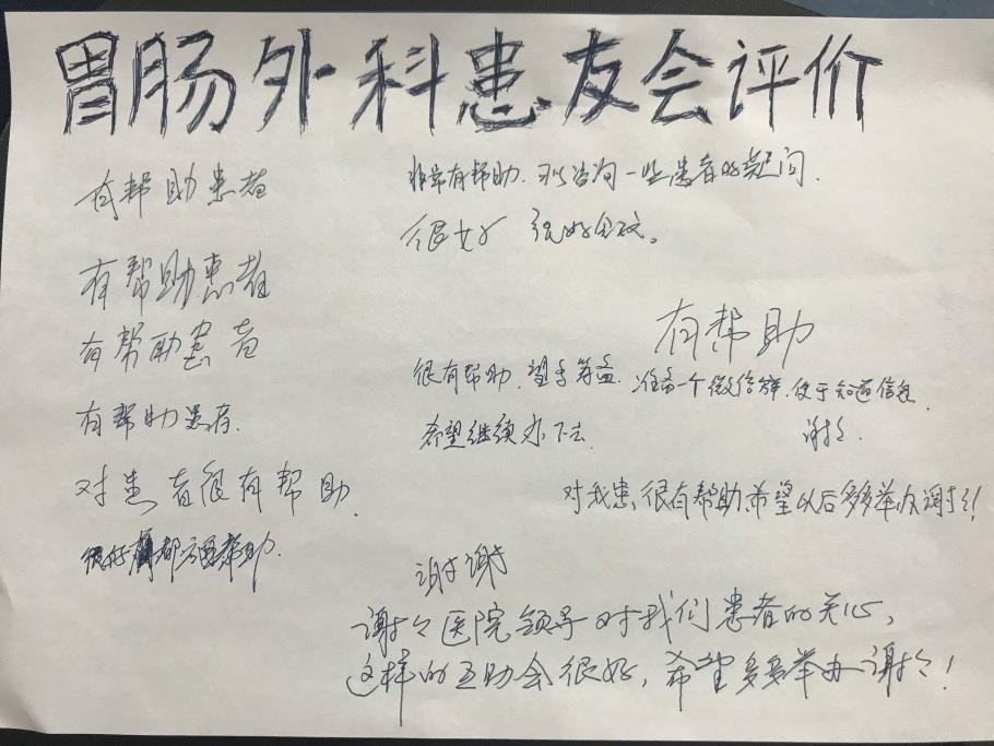 沈贤副院长首先总结了胃肠外科一年来的所取得的治疗成果,向胃肠道肿瘤患者对医护人员的支持和肯定表达了谢意,高度赞扬了胃肠肿瘤患者积极、乐观向上的精神,并预祝此次患友会圆满成功。