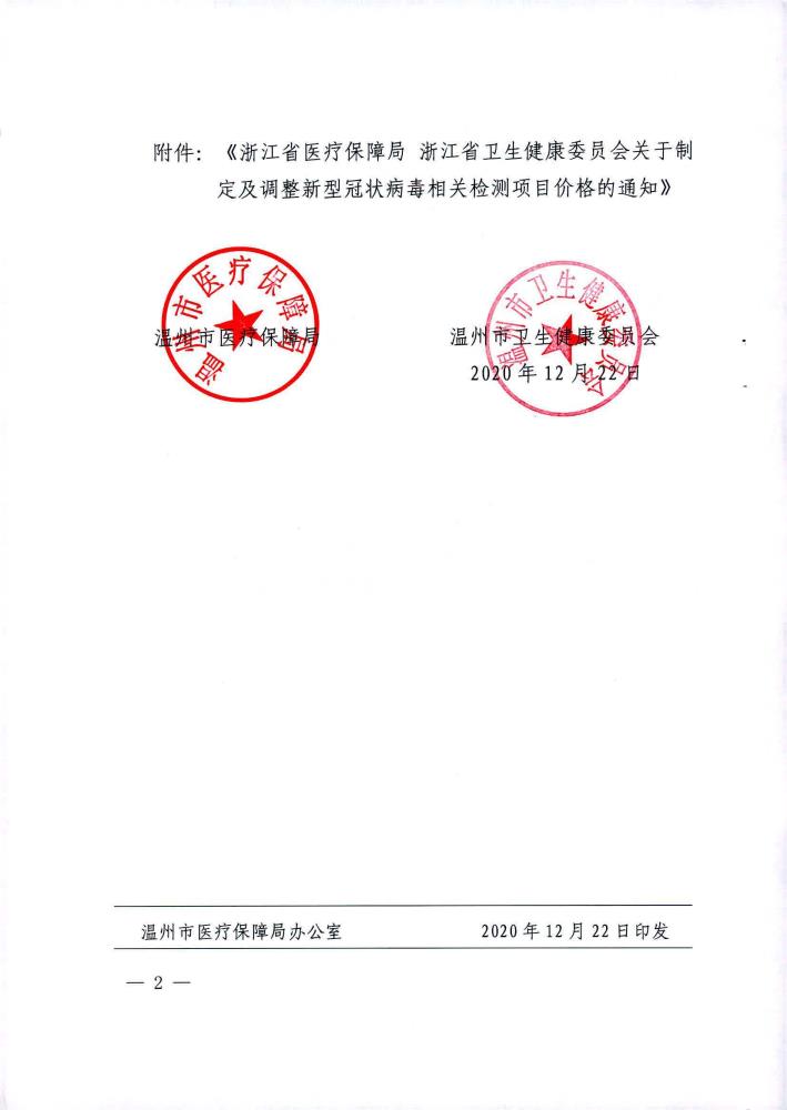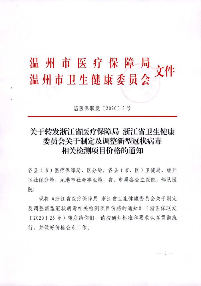 关于制定及调整新型冠状病毒相关检测项目价格的通知