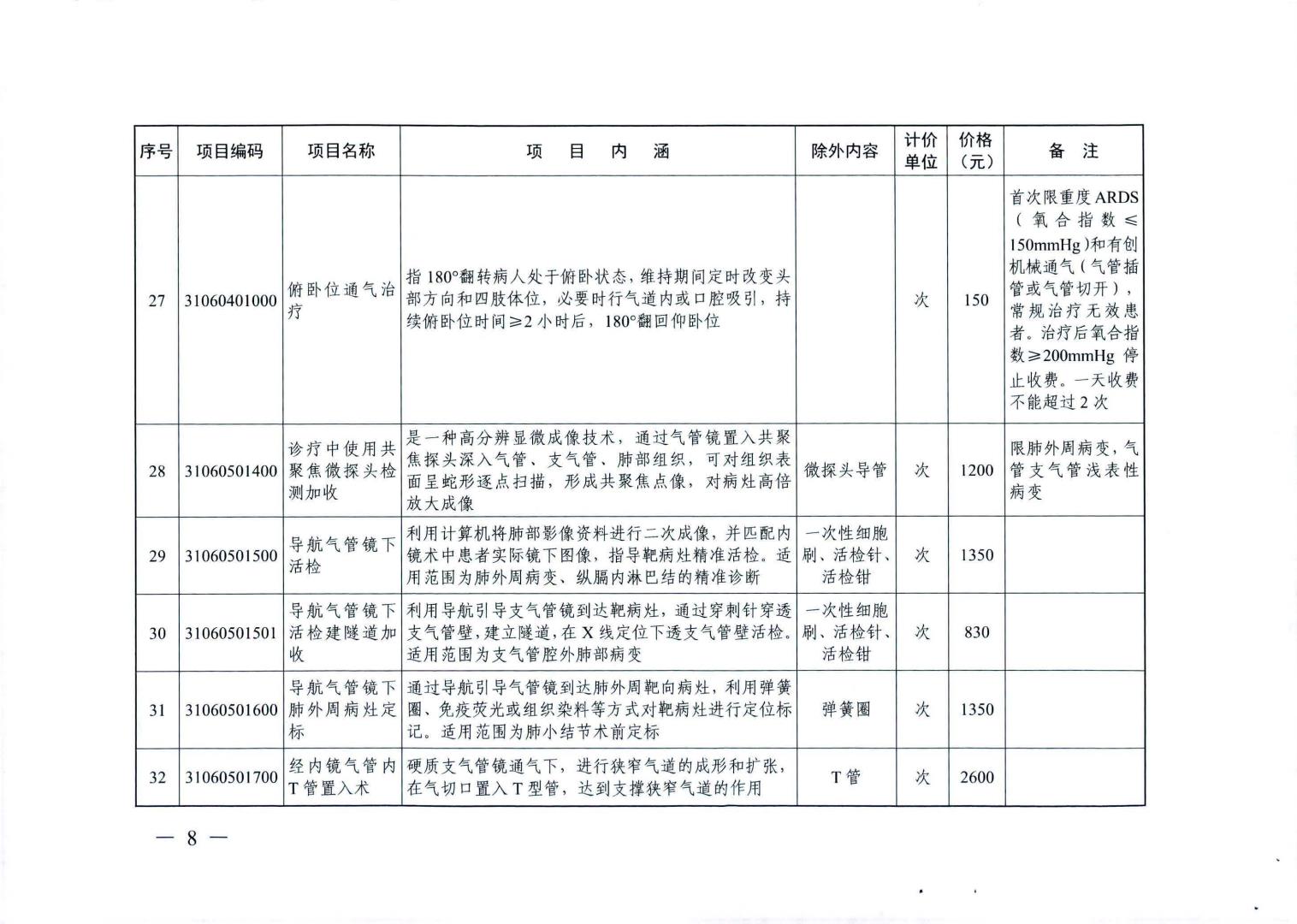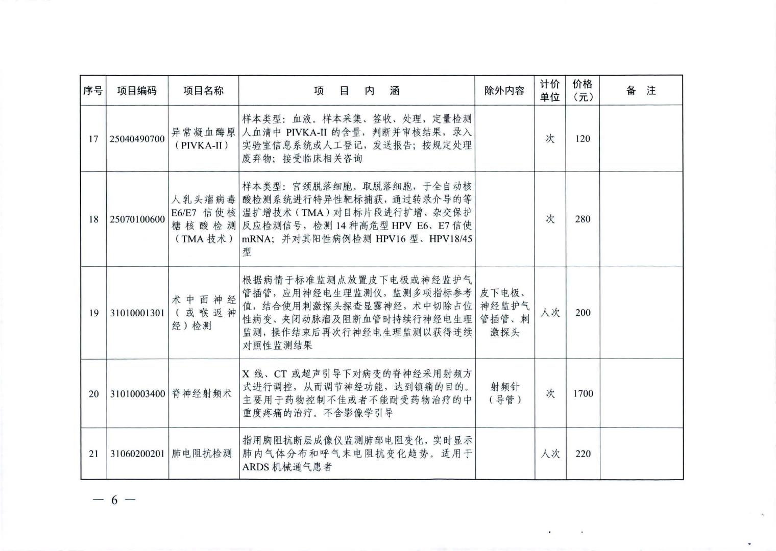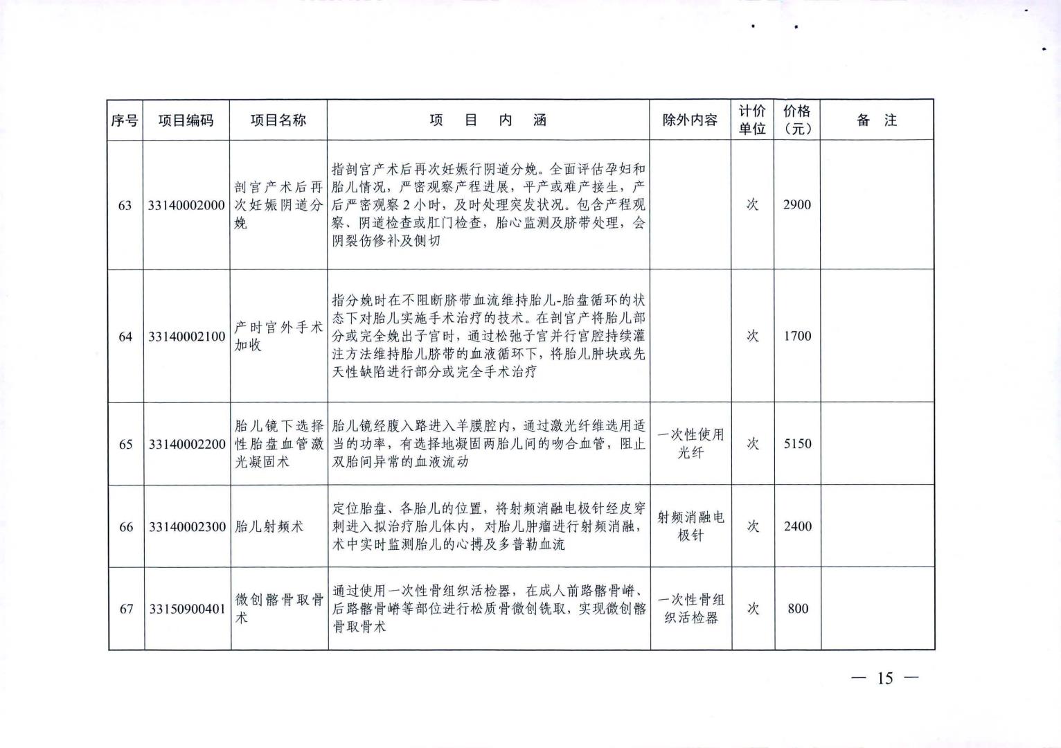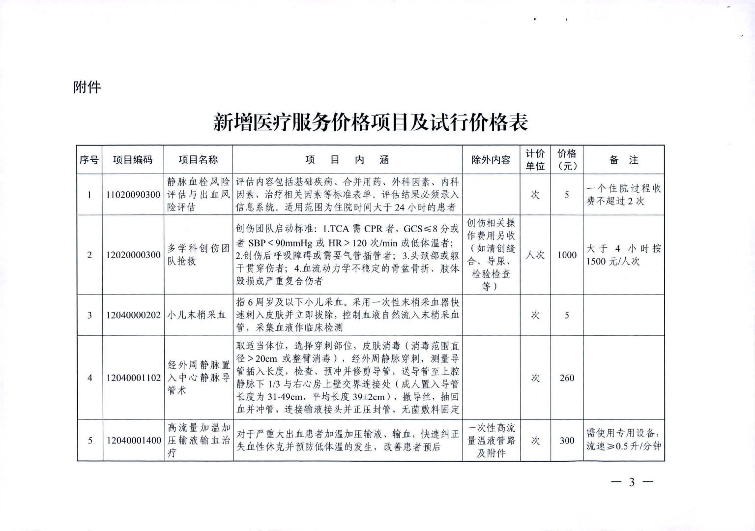 新增医疗服务价格项目及试行价格表