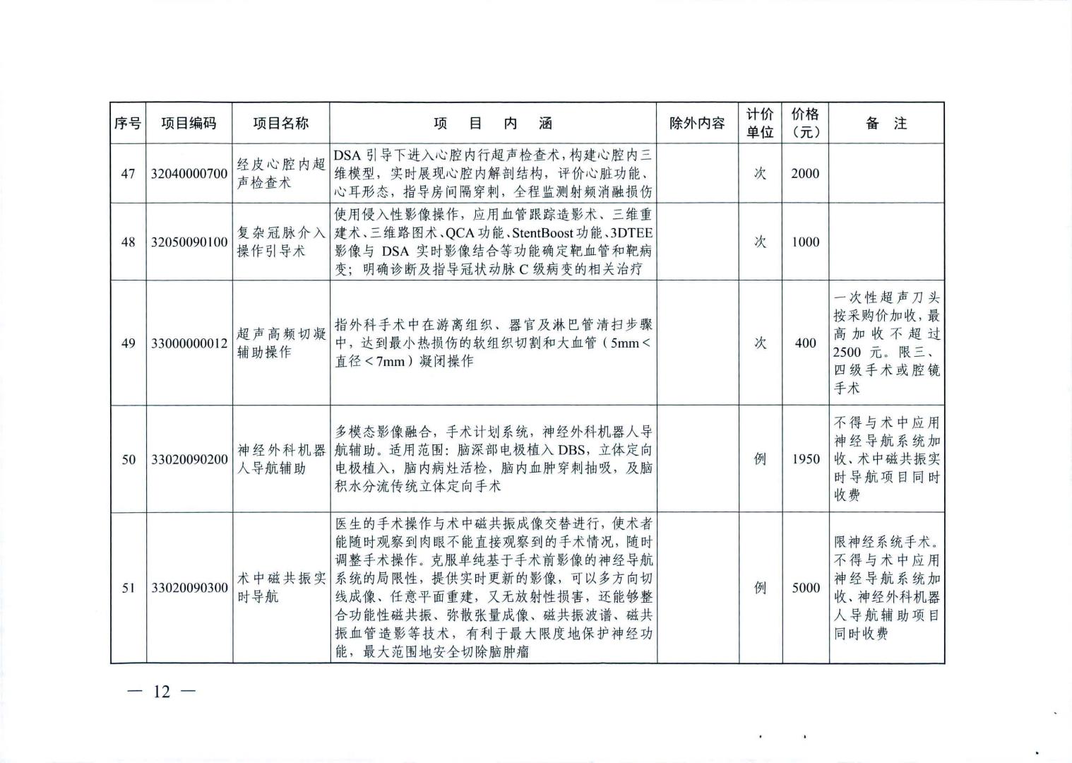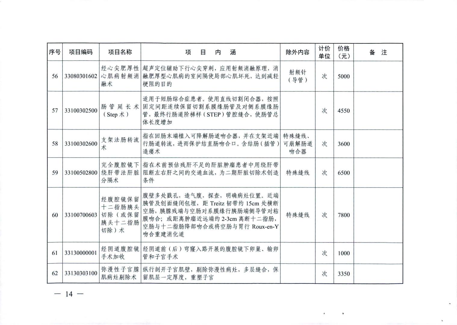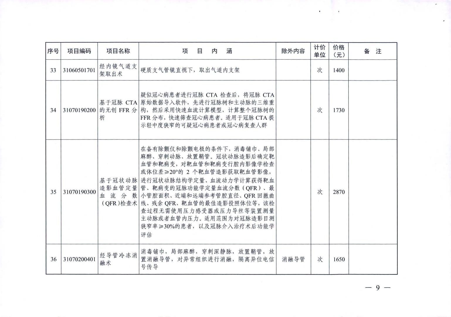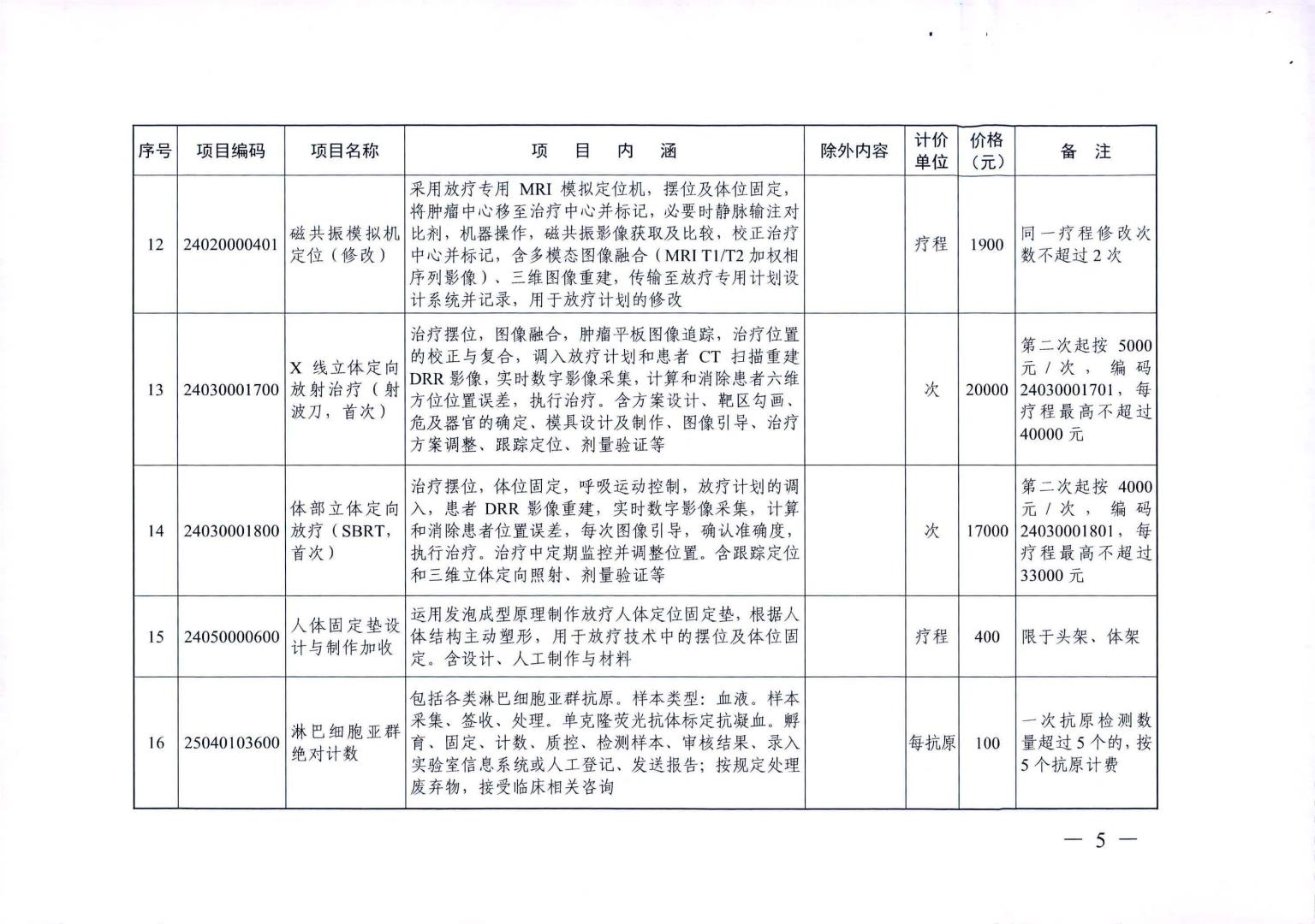 新增医疗服务价格项目及试行价格表